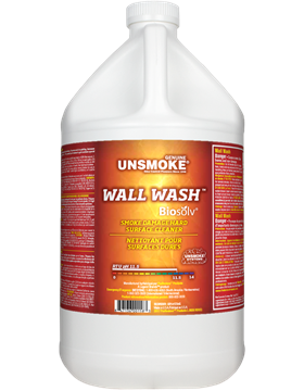 ProRestore Unsmoke's Wall Wash with Biosolv is formulated with proprietary brightening and deodorizing agents for cleaning smoke-damaged hard surfaces. Especially effective for prepping walls for painting - it quickly removes both oily and dry soot, and does not require rinsing when used as directed. Especially effective for cleaning up after grease fires. A true multi-use product, Wall Wash can also be used as a degreaser for parts washing and can be added to any cleaning agent to boost odor control.