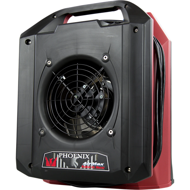 Phoenix AirMAX Radial Air Mover is the new leader in performance, convenience, portability, and safety for low profile air movers.  Its compact 20 ½″ X 17″ footprint and 8 ⅞″ height make the Phoenix AirMAX Radial Air Mover the most compact and portable fan in its class. The rugged mold in the handle gives you the solid control required when packing and unpacking lots of air movers. Its easy-winding cord wrap and multiple securement options makes it a snap to prep for transport. Because of its deeply-molded interlocking features, the Phoenix AirMAX is rock solid when stacked for transport.