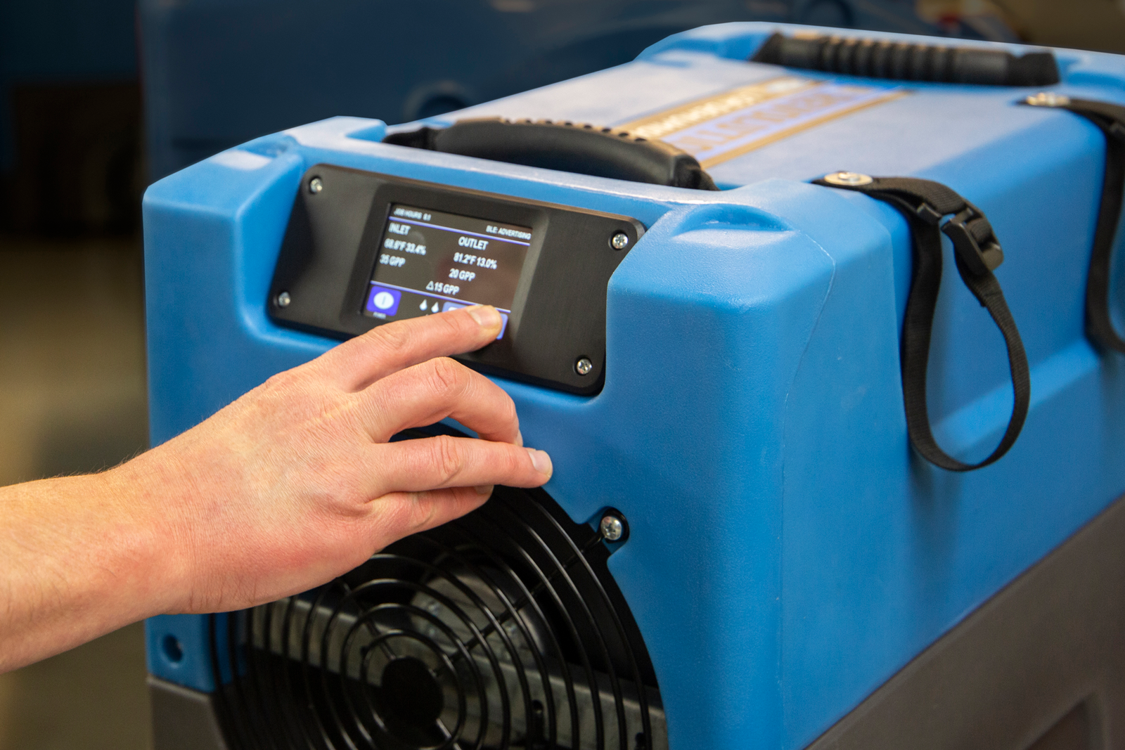 - NEW! Command Hub touchscreen controller displays real-time temp, RH, grain depression and drying progress trends at a glance. Controller integration product for existing i-Series dehumidifiers also available. Learn more.