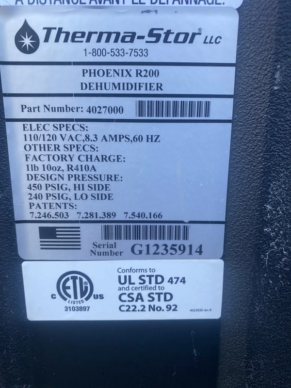 The R200 pulls 125 pints at AHAM while drawing only 8.3 amps. By using Phoenix’s patented bypass system, the R200 will continue to maximize water removal in temperatures beyond the competition’s acceptable operating range. The R200 also offers user-friendly solid state controls which - in addition to power and purge buttons - now feature total hours and job hours.