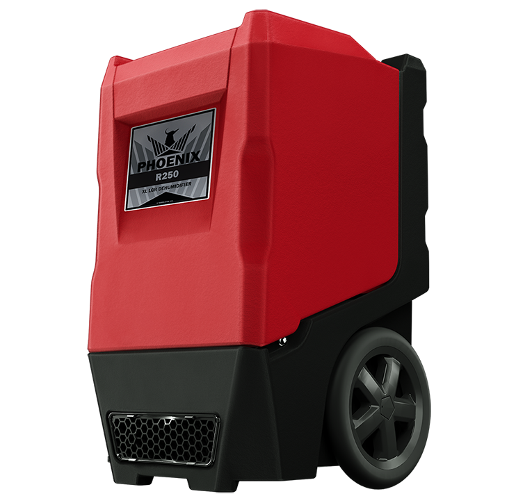 The Next Generation in the Phoenix R Series, the Phoenix R250 LGR Dehumidifier has been redesigned from the inside out to be a rugged, high-performance dehumidifier. Phoenix is leading the industry by introducing epoxy-coated coils. This new feature will extend the life of the coils, provide protection in corrosive environments, and maintain the coil’s heat transfer ability. Phoenix has also added a new heavy-duty condensate pump and a new rugged float switch designed specifically for restoration environments.