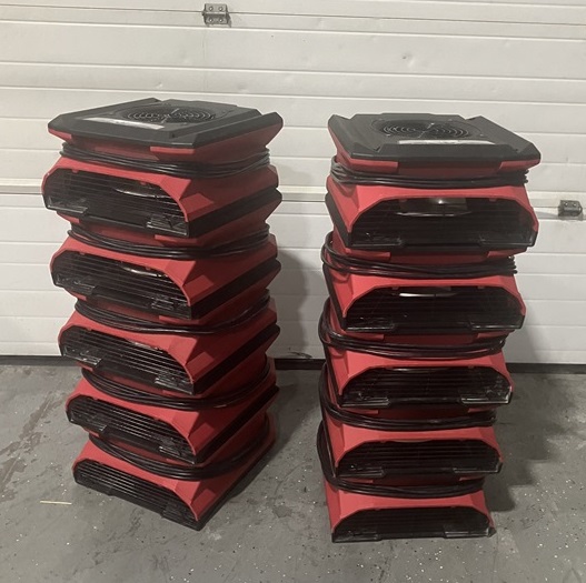 The Phoenix AirMAX Radial Air Mover is the new leader in performance, convenience, portability, and safety for low profile air movers. Its compact 20 ½″ X 17″ footprint and 8 ⅞″ height make the Phoenix AirMAX Radial Air Mover the most compact and portable fan in its class. The rugged mold in the handle gives you the solid control required when packing and unpacking lots of air movers. Its easy-winding cord wrap and multiple securement options makes it a snap to prep for transport. Because of its deeply-molded interlocking features, the Phoenix AirMAX is rock solid when stacked for transport.