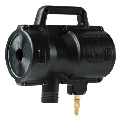 Now you have the only tool in the industry that quickly cleans AND dries vacuum and solution hose. And now it works with the Flash Cuffs. A hose is cleaned by passing through the Hoser's 3 cleaning brushes to scrub off soil, and is then blasted with hot water by a 360 degree cleaning ring. Water is removed by the extractor's vacuum and 2 rubber squeegees, so it leaves the Hoser clean and dry.